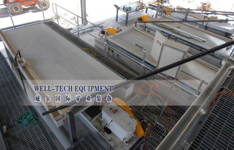 澳大利亞客戶,選鎢礦尾礦,處理量100t/h,選礦工藝流程由雙方共同確定,主設備有滾筒篩,高頻篩、搖床等,選場目前已經投入生產,原計劃鎢38%的目標品位,采用我們的設備后最終達到63%。
