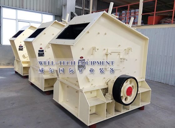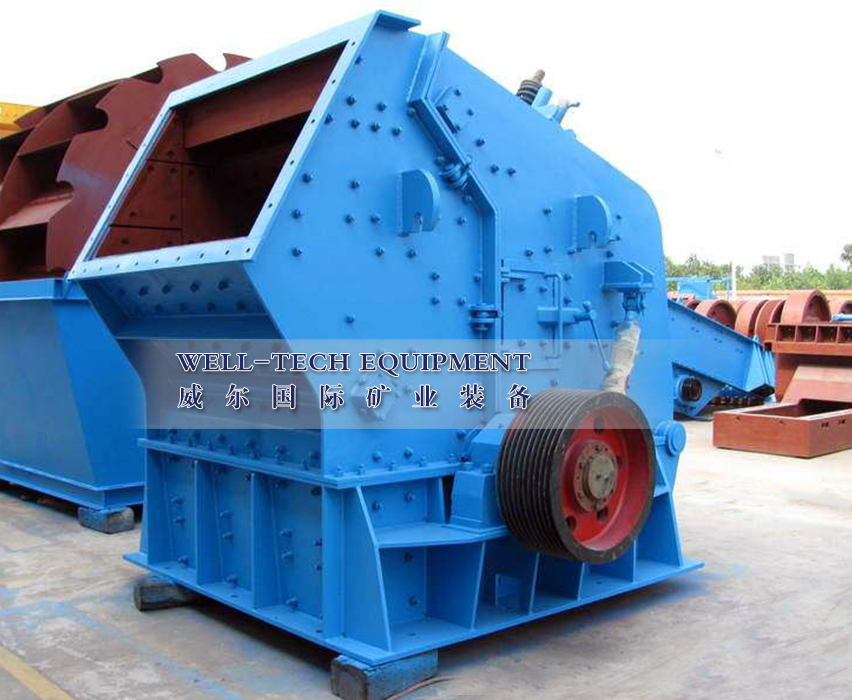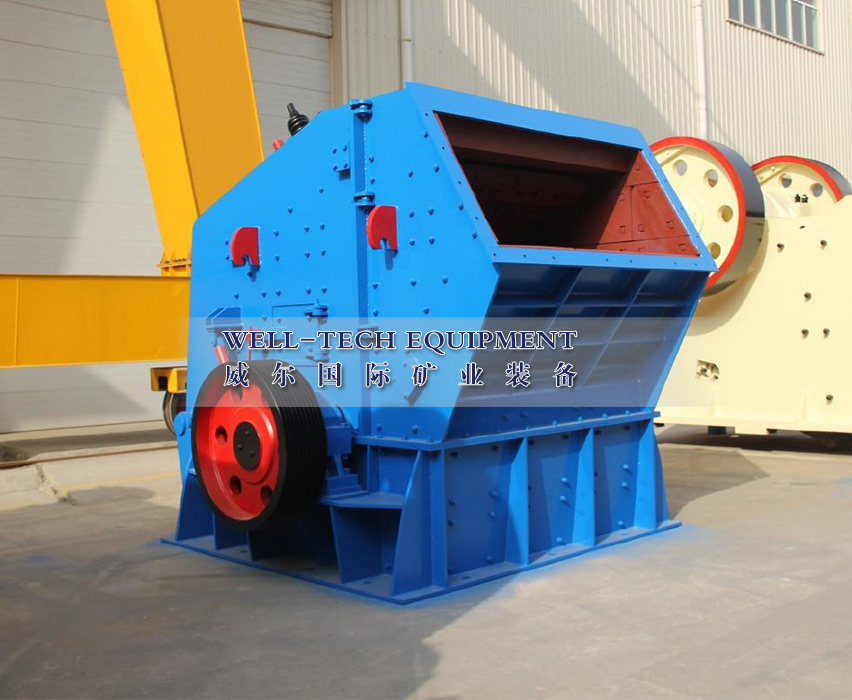 本系列反擊式破碎機理想的入料粒度為100-500mm,最大不得超過規定值。出料粒度用戶根據需要調整錘頭與反擊板、均整部件之間的間隙而達到。