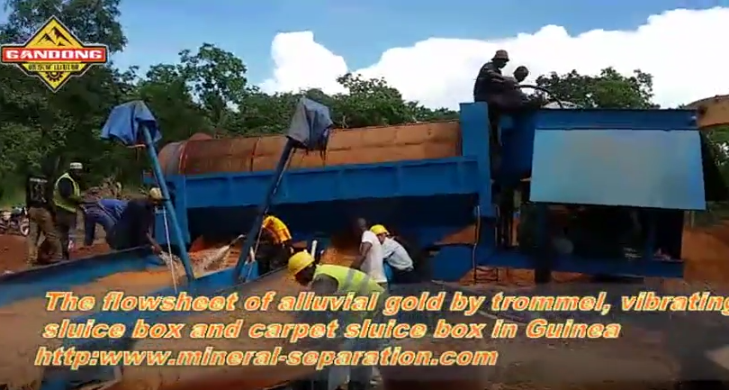 幾內亞沙金滾筒篩鼓動溜固溜選金現場
