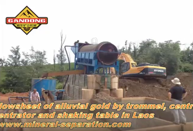 老撾沙金礦滾筒篩及離心機搖床回收流程
